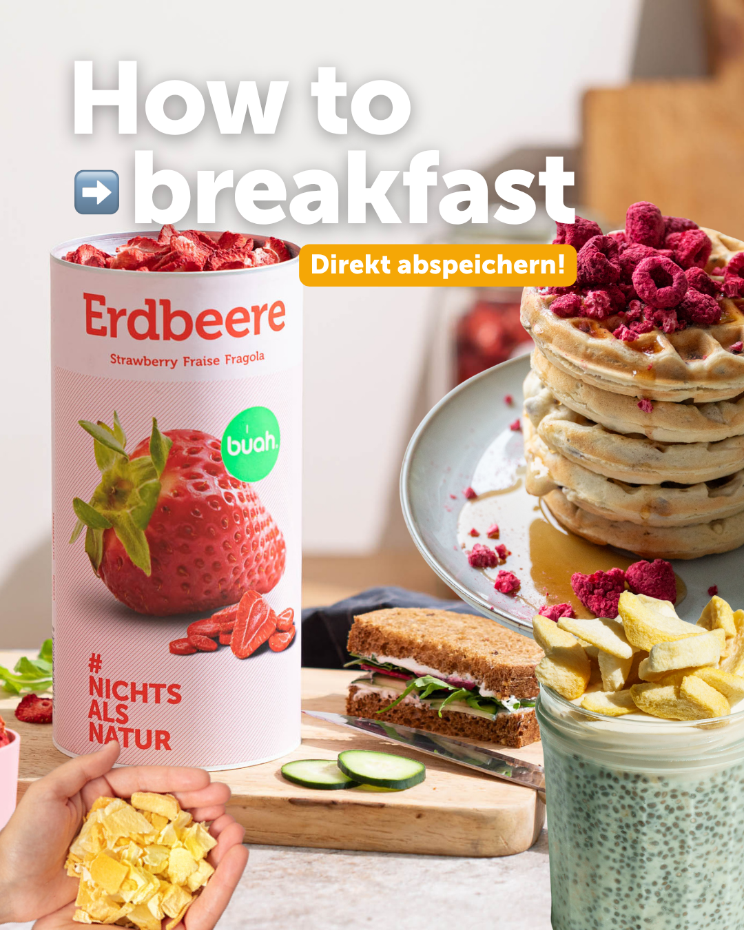La Frutta secca e la Frutta liofilizzata di buah sono completamente prive di additivi. Contengono naturalmente zuccheri della frutta, poiché sono presenti in modo naturale. Durante il processo di liofilizzazione viene rimossa quasi tutta l’acqua, concentrando così i valori nutrizionali della frutta. Per questo la frutta liofilizzata è molto più leggera rispetto a quella fresca: 100 g di Frutta liofilizzata corrispondono a circa 1 kg di frutta fresca. Anche se la quantità di zuccheri della frutta sembra più alta nei 100 g di frutta liofilizzata, è solo perché pesa molto meno. Puoi trovare i valori nutrizionali esatti per ogni prodotto direttamente nel nostro negozio online.