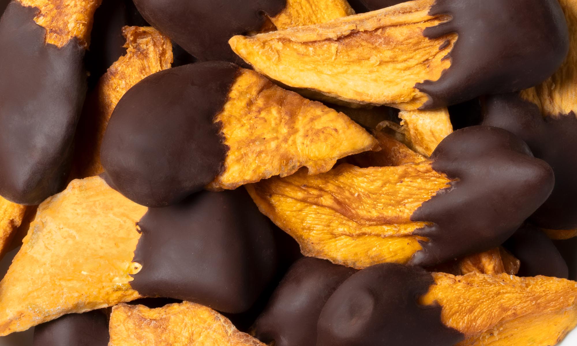 Mango essiccato *** 55 %, Massa di cacao*** 45 % (100 % Cacao).